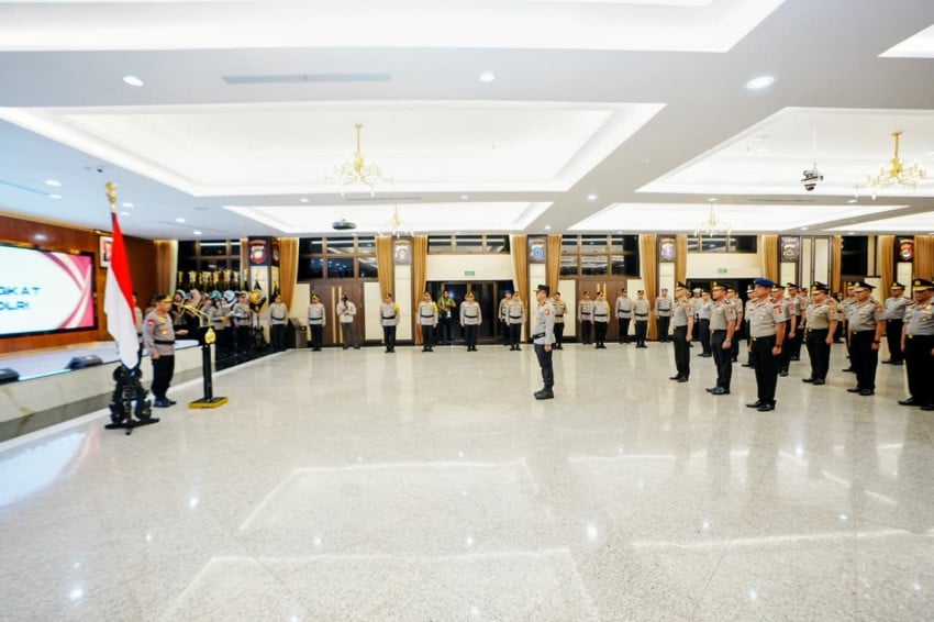 Polri menggelar upacara kenaikan pangkat ke dan dalam golongan Perwira Tinggi (Pati) Polri dan kenaikan pangkat bagi Perwira, Bintara, serta Tamtama Polri secara serentak di seluruh wilayah Indonesia. Foto: Puteranegara